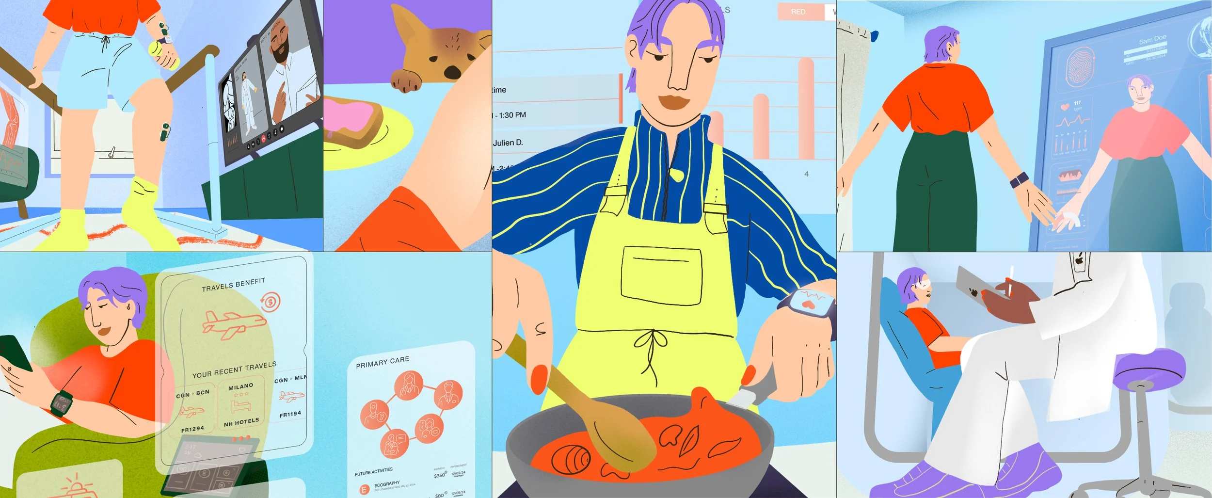 For Interbrand New York, I illustrated six key themes from their report on the future of healthcare. The project highlights a shift toward a patient-centered model, where care is driven by outcomes rather than profits. My work focuses on visualizing how this vision empowers patients by providing greater access and control over their health within a more inclusive and humanized system.